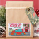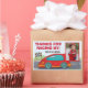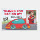 Cute Red Racing Car Birthday Photo Thank You Sticker. Featuring a vibrant cartoon red race car, checkered flags, and space for a photo. Personalize it with your child's name and a special message to thank guests. Perfect for any car loving boy's birthday celebration. This customizable thank you note adds a fun, memorable touch. Easy to personalize and share the joy!
