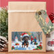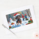Pegatina Rectangular Dachshund corre en nieve con Gorra Navidad