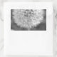 Esta es una foto vertical, en blanco y negro de un diente de león que ha llegado a la semilla. Todavía conserva su forma de globo. Fotografía de Brooke Ryan.