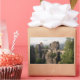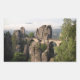 Pegatina fotográfico rectangular del puente de piedra Bastei (Bastei Brücke) sobre el río Elbe, que conecta las icónicas formaciones rocosas de las montañas Elbe Sandstone cerca de Dresden en el parque nacional Saxon Suiza (Sächsische Schweiz) en el este de Alemania.
