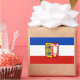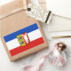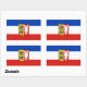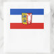 Pegatina con bandera variante de Schleswig-Holstein; diseño con tricolor horizontal de rojo, blanco y azul, y con escudo de armas del estado en el centro