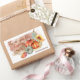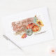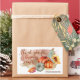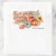 Calabazas acuarelas, girasoles y hojas de otoño sobre un fondo dorado rosa con chispas. Pegatinas para pequeñas empresas.