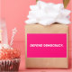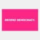 Pegatina Rectangular Defender la democracia tipografía moderna rosa cal
