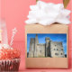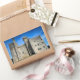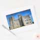 Pegatina rectangular de la foto del castillo medieval de Beynac del castillo francés situado en la orilla del río de Dordoña en Beynac-y-Cazenac en Francia.