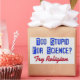 Es hora de contraatacar a los fanáticos religiosos que quieren negar a la ciencia el favor de la superstición. En letras azules, "¿Demasiado estúpidos para la ciencia?" respondía con letras rojas: "Intenten la religión".