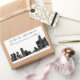 La celebración boda de estilo vintage favorece el diseño pegatina con una imagen grabada única del horizonte de la ciudad del centro de Detroit tomada por la noche a lo largo de la orilla del río, combinada con la tipografía Art Deco vintage, y un esquema de colores clásicos en blanco y negro. Forma pegatina Rectangle en formato paisajístico, perfecta para regalos de favor y cajas de bienvenida fuera de la ciudad.