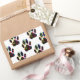 Una pauta de huellas de perros con las manos de los tilos de confeti. idea de decoración festiva mascota.