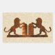 Un "tallado de madera" generado por computadora, de estilo tradicional; leones que custodian los Diez Mandamientos.