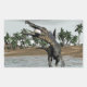 Pegatina Rectangular Dinosaurio espinosaurio comiendo peces - rendiment