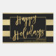 Feliz Navidad, Pegatinas de Dirección. Tipografía divertida y de moda con letras a mano sobre el popular fondo moderno de rayas negras y doradas. El efecto de Relieve metalizado en oro falso crea una impresión sofisticada y elegante que sus amigos y familiares seguramente recordarán. Postal de correspondencia, tarjetas de fotos y accesorios de correo electrónico disponibles en la tienda.