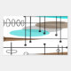 Diseño moderno inspirado en la era atómica, de mediados de siglo, en colores verde azulados, marrones y negros. Artista recreó el diseño atómico basado en una muestra de tela de esa época.