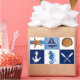 Diseño original pintado con acuarela de Sandra Gale, con bloques de dibujos de temática náutica como estrellas de peces, anclas, barcos, tortugas y conchas. Excelente diseño para el verano, casas de playa, bungalows o para todo aquel que ame la playa, el océano o el pescado.