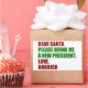 Querido Santa, por favor, tráenos un nuevo presidente. Amor, Estados Unidos. Divertida pegatina política de Navidad para los estadounidenses listos para las elecciones de 2024. Pegatinas de humor de vacaciones.