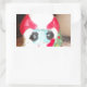 Pegatina Rectangular Divertido Santa con la impresión de arte de nieve