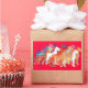 Grupo de perros completamente coloreado, aquí sobre fondo azul. Nombre de esta imagen: Modern Great Danes.
