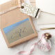 Dos corazones en la arena de una playa tropical. Agregue su nombre y dirección para usarlos como etiquetas de dirección de retorno.