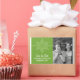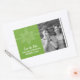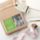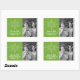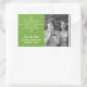Anuncie su boda temática de vacaciones o invierno con esta foto de Sweet Snowflake Save the Date Pegatinas. Con un delicado y elegante copo de nieve blanco y una delgada franja sobre un sólido fondo verde, este divertido diseño es fácil de personalizar. Simplemente agregue sus propios detalles de fotos y bodas en los campos de texto proporcionados o haga clic en "Personalizar" para encontrar más opciones de personalización.