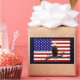 Un águila calva escanea el cielo desde su percha en una rama de árbol; superpuesto a una bandera de los Estados Unidos.