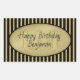 Pegatina Rectangular Edad sutil Black and Gold Stripe Feliz cumpleaños