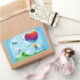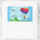 Paisaje de fantasía con forma de corazón de globo y gato, tarjeta de San Valentín.