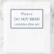Etiqueta de envío para arte fino que dice "por favor no doblen contiene arte fino" en azul marino contra blanco. Bordes azules de la marina rodean el texto. Un diseño sencillo y claro.