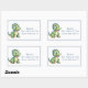 Una etiqueta de nombre divertido para los niños con un pequeño y amigable dinosaurio verde con picos azules y una panza amarilla, personalizada con tu texto. Ideal para volver a la escuela, viajes de campo, reuniones familiares y más. El texto se puede eliminar para que pueda escribir en cada pegatina individualmente.