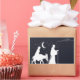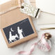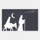 Diseño Navidad único con sello blanco de María y José en el viaje a Belén visto a lo lejos.