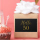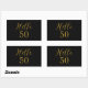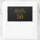 Elegante diseño de pegatina "Hola 50" en negro y dorado para cumpleaños 50.