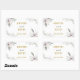 Diseñado para coordinar con nuestra colección de bodas de color oro de las flores rusticas de color blanco turquesa, este pegatina redondo de boda personalizable presenta flores blancas acuarelas y hojas verdes emparejadas con un tipo de letra elegante en oro. personalice el nombre de la novia y Groom y la fecha boda. Parte de la colección de bodas de flores blancas de estilo elegante
