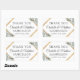 Elegante boda GRACIAS pegatinas/ etiquetas con verde profundo, hojas de color sabio, ramas, follaje, vegetación - tema botánico. Marco falso de Relieve metalizado dorado en forma de diamante. Perfecto para cualquier época del año o tema boda. Delicado diseño en hojas pintadas de acuarela.