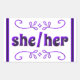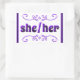 Ella Pronouns con pegatinas de Doodles Púrpura. Una forma bonito de mostrar tus pronombres.