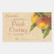 Etiqueta de estilo vintage para mermeladas y jaleas con un ilustracion de melocotones con hojas verdes, hecha de una vieja pintura de postal, con rollos y texto de color marrón. La fecha se puede dejar para escribir la fecha o cambiar el texto punteado al año que necesite.