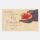 Etiqueta de estilo vintage para mermeladas y jaleas con un ilustracion de higos marrones violetas, hecha de una vieja pintura de postal, con rollos y textos de color marrón. La fecha se puede dejar para escribir la fecha o cambiar el texto punteado al año que necesite.