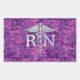 Pegatina Rectangular Enfermera inscrita RN Silver Caduceus en Camo Rosa