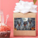 Descanse el espíritu espeluznante con este inquietante diseño de Halloween que presenta una manada de perros bajo un cielo oscuro, iluminado por la luna, rodeados de bates voladores y calabazas brillantes. Perfecto para los amantes de la diversión con sus peludos amigos.