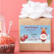 Un pegatina de regalo de Navidades elegantes y corteses para los niños con Santa en su traje rojo (sosteniendo un bastón de caramelo) y su reno favorito, Rudolph, detrás de él. El texto dice "¡Feliz Navidad! Por favor, entregue a Jayden este regalo especial de Santa Claus" — asegúrate de personalizar el nombre del niño. También puedes cambiar el saludo si lo deseas. El pegatina también incluye dos baudias rojas con copos de nieve y un paisaje nevado.