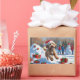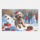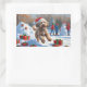 Pegatina Rectangular Escena Navideña Festiva de Bernedoodle en la Nieve