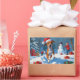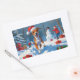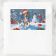 Pegatina Rectangular Escena Navideña Festiva de Nieve con Basenji