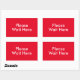 Pegatina Rectangular Espere aquí el mensaje de Personalizable rojo