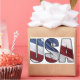 Un diseño original de Shelley Neff Design and Photography con las letras de los EE.UU. en una capa de audaces y brillantes colores patrióticos rojo, blanco y azul. Esto haría el regalo perfecto para cualquiera que sea un coleccionista de decoración patriótica de EEUU o miembro del equipo deportivo de EEUU o fan. Se ve perfecto en cualquier producto, pero especialmente postales, sellos, tarjetas de felicitación, almohadas, galletas, brownies, baldosas de cerámica, trivets, placas, polos, relojes, posters, impresiones fotográficas o de lona, y se puede personalizar añadiendo tu nombre u otro texto eligiendo 'Personalizar It'. Para ver todos los demás productos de nuestra tienda que coincidan con este diseño, visite www.zazzle.com/sneffygirl* y haga clic en la categoría ‘Patriotic > USA in Red White and Blue American Patriotic Flag’. ¡Gracias por tu interés!
