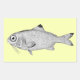 Un bello y detallado dibujo de una línea vintage de un pez bizarro. El pescado tiene unos ojos extraordinariamente grandes y los bigotes como un bagre, pero también tiene escalas como una trucha o un salmón. La vista es inmensa y luminosa.