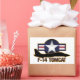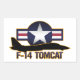 Silueta nítida del famoso avión de combate F-14 Tomcat respaldado por el emblema del redondeo nacional de la aeronave militar estadounidense