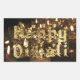 Pegatina Rectangular Felices Estrellas Diwali en negro y oro