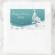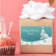 Felices vacaciones ilustracion con árbol de Navidad, estrellas y decoración de copos de nieve con escena de invierno