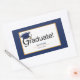 Pegatina Rectangular Felicitaciones Graduado, Gorra, Tassel, Azul, Oro