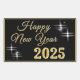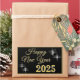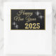 Moderno y elegante Feliz Año Nuevo 2025 Elegante Pegatina Rectangular Sparkles con chispas blancas en un fondo negro y en un guión de moda. Simple pegatina para desear a sus amigos y familia feliz Año Nuevo. Puede cambiar el texto si lo desea.