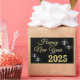 Pegatina Rectangular Feliz Año Nuevo 2025 Elegantes espárragos