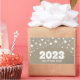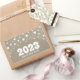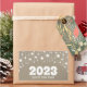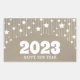 Fondo de color beige natural, guirnaldas de estrellas blancas, feliz texto de personalizable de año nuevo 2023