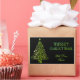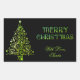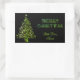 Pegatina Rectangular Feliz Árbol de Navidad Estrellas Verde Negro Elega