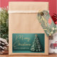 Magnífico guión de oro sobre un elegante fondo verde y un árbol de Navidad que da la única ilusión de mirar 3D completo con una estrella de bonito en la parte superior. Un moderno garabato manuscrito sobre tu bienvenida personalizada en un moderno pegatina de vacaciones para las etiquetas de regalo.